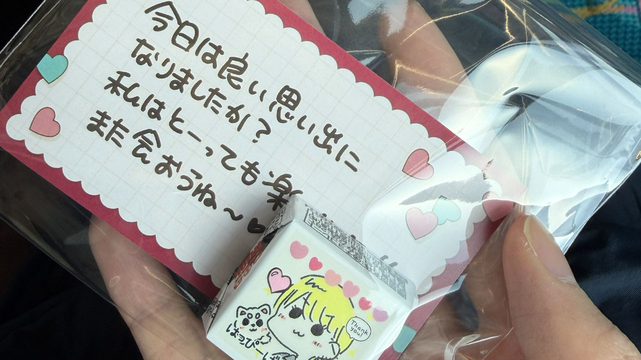 いよいよ帰路につくバスに乗り込む時、バレンタインが近かったこともありドア前でとみーがメッセージカード付きチロルチョコを手渡しでプレゼントしてくれました!